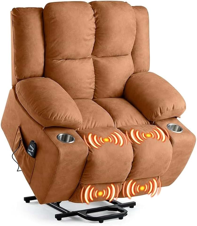 Oversized Electric Lift Recliner Chair for Elderly Power Lift Recliner Chairs Sofas with Massage and Heated Brown Fabric Recliner Chair for Living Room with 2 Side Pockets, and Cup Holders