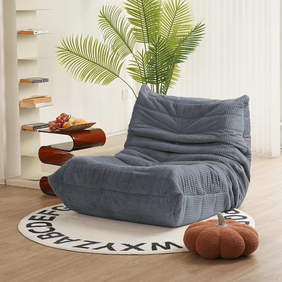 N&V Fireside Chair, Mid Century Armless Floor Sofa, Soft Premium Corduroy Floor Lounge Chair, Foam Sofa Accent Chair for Living Room Bedroom and Office, Frost Grey