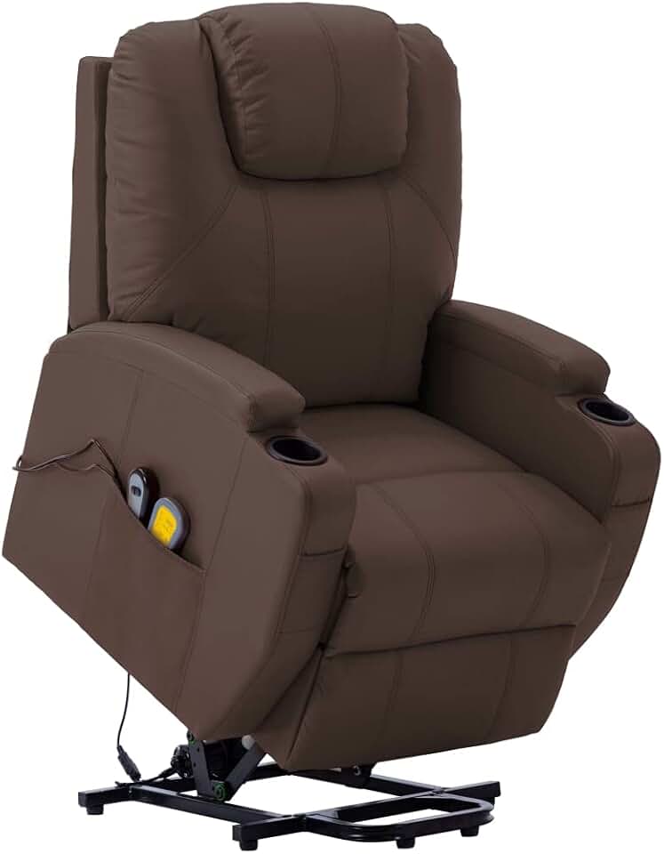 Brown Power Lift Recliner Chairs for Elderly, Home Theater Reclining Sofa Chair, Electric Lift Chairs Sofa with Massage and Heated for Living Room Home with 2 Side Pockets, and Cup Holders