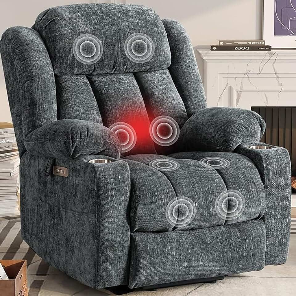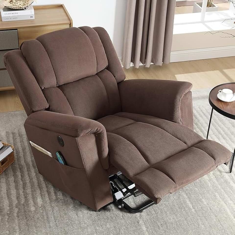 Large Overstuffed Wide Recliner Chairs for Elderly Side Pockets Electric Living Room Recliner Sofa Large Power Lift Electric Recliner Chair with Massage and Heat, USB Ports, 2 Remote Controls