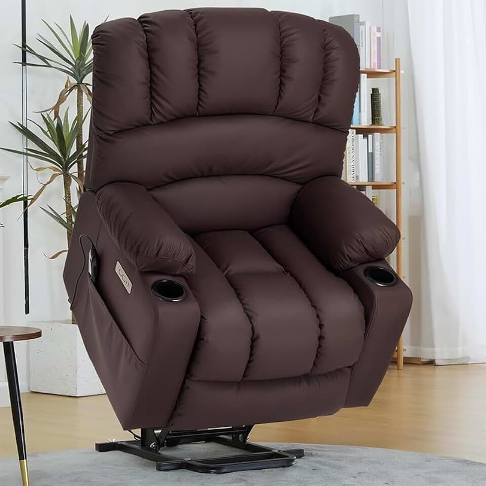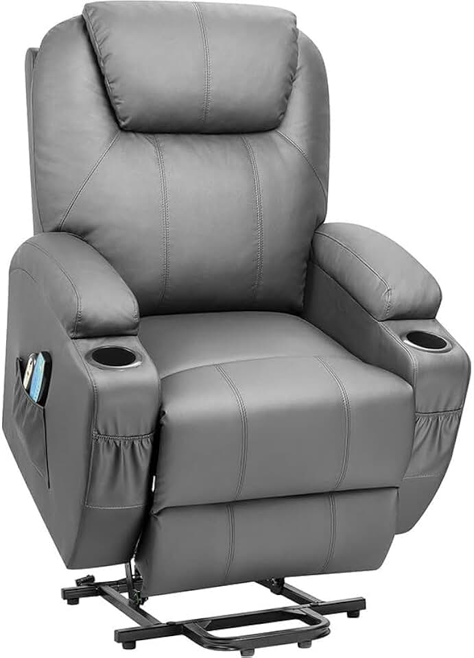Modern PU Leather Power Lift Recliner Chair for Elderly, Ergonomic Classic Electric Lift Single Sofas with Massage and Heated, Home Theater Reclining Sofa Chair with Side Pockets, Cup Holders