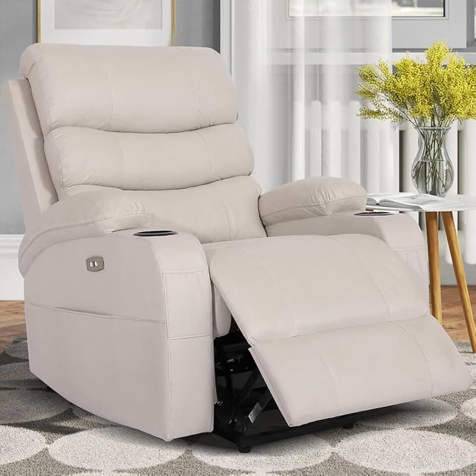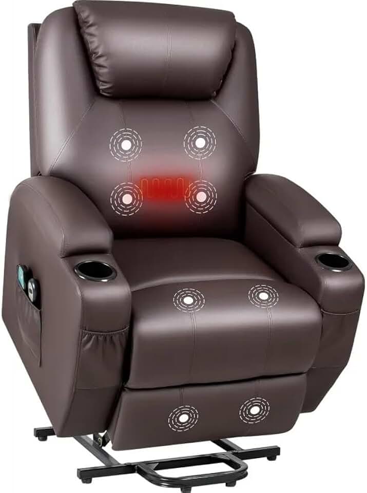 Recliner Chair, PU Leather Reclining Sofa with Massage and Heated, Electric Power Lift Recliner Chairs for Elderly, Adjustable Living Room Recliner Couch with 2 Side Pockets Cup Holders