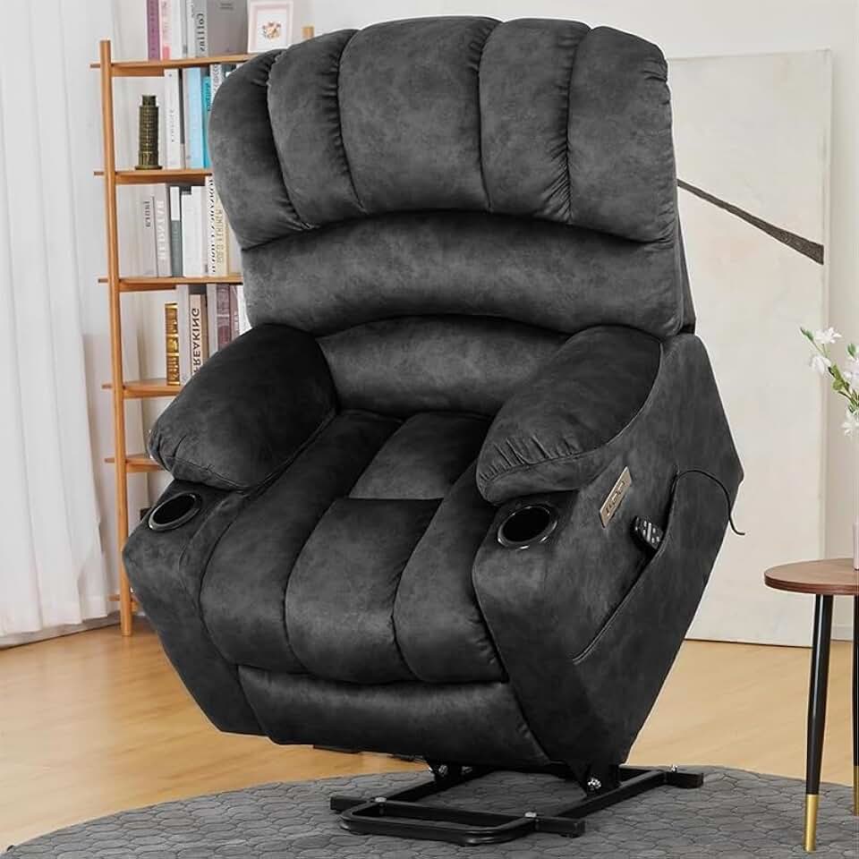Large Fabric Power Lift Recliner Chair for Elderly, Comfort Rocker Recliner Sofas, Lounge Sofa Home Theater Seating with Massage and Heated for Adults