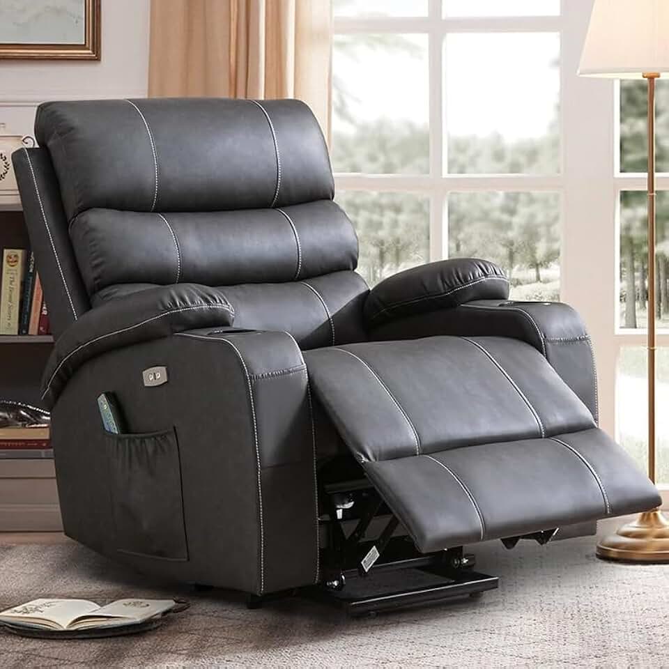 PU Leather Electric Lift Recliner Chairs for Adults, Large Power Lift Recliner Lay Flat Chair, Dual Motor Lift Recliners Sofa with 2 Side Pockets, and Cup Holders, USB Ports,Remote Control