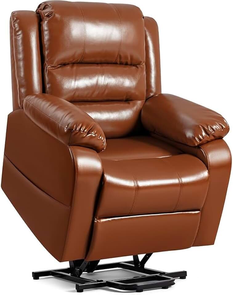 PU Leather Brown Electric Lift Chairs Recliners for Elderly, Office Bedroom Faux Leather Power Recliner Chair Sofa with 2 Side Pockets, Cup Holders, Recliner Chair for Living Room, Home Theater Seat