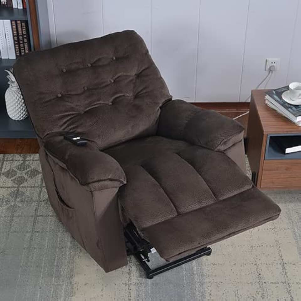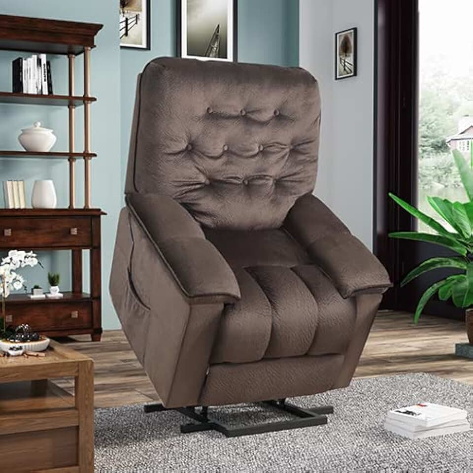 Home Theater Seating, Sillones para Dormitorio, LHX Power Lift Chair Soft Fabric Upholstery Recliner Living Room Sofa Chair with Remote/Brown2