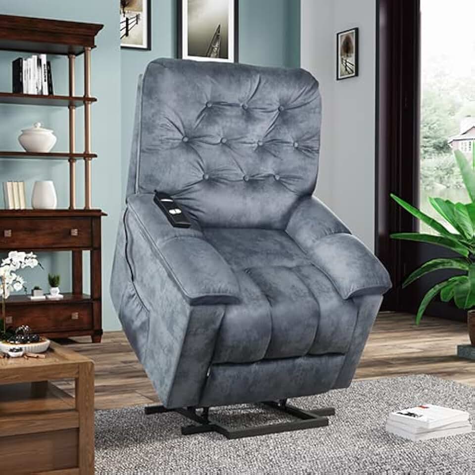 Butacas para Sala, Sillones Reclinables, LHX Power Lift Chair Soft Velvet Upholstery Recliner Living Room Sofa Chair with Remote Control/Blue