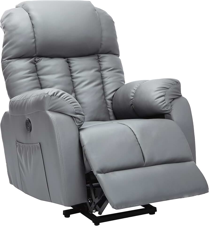allkpoper Electric Power Lift Recliner Sofa Chair with Adjustable Head Rest for Elderly, Infinite Position, PU Leather, Side Pocket, USB Port for Living Room