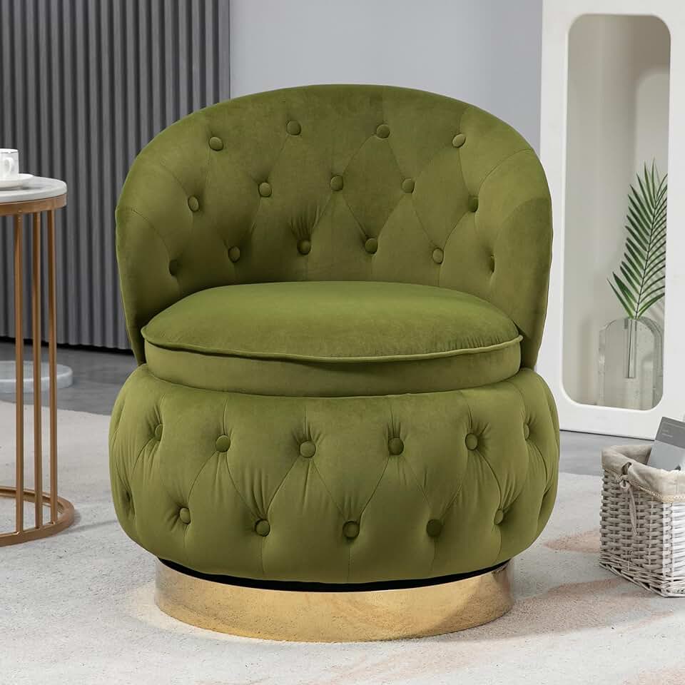 Modern 360 Degree Swivel Chair,Cuddle Barrel Accent Sofa Chairs with Storage,Round Armchairs with High Backrest and Upholstered,Velvet Accent Chair for Living Room,Bedroom,Office,Small Spaces,Green