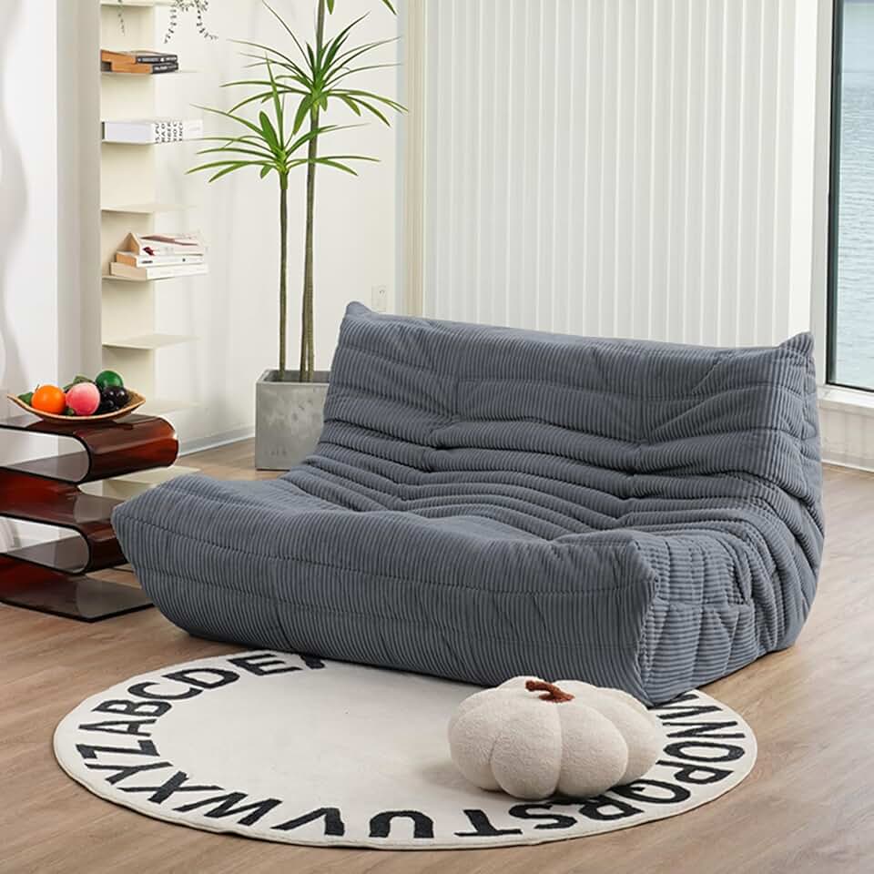 N&V Fireside Loveseat, Mid Century Armless Twin Size Floor Sofa, Soft Premium Corduroy Floor Lounge Chair, Foam Sofa Accent Chair for Living Room Bedroom and Office, Frost Grey