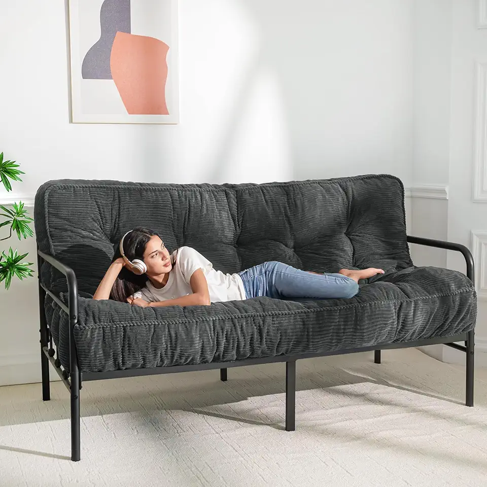MAXYOYO 8" Futon Mattress Queen Size, Ultra Thick Futons Sofa Couch Bed Tufted Sleeper Sofa Bed, Corded Fabric Floor Mattress for Adults, Shredded Foam Filling (Frame Not Included), Dark Grey