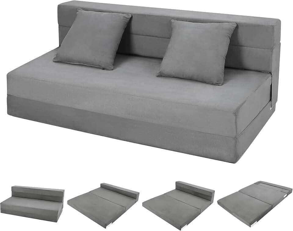 Folding Sofa Bed with Pillows, Convertible Sleeper Chair, Modern Futon Floor Couch, Foldable Memory Foam Chair Bed, Lazy Guest Bed for Living Room, Home Office, Gray
