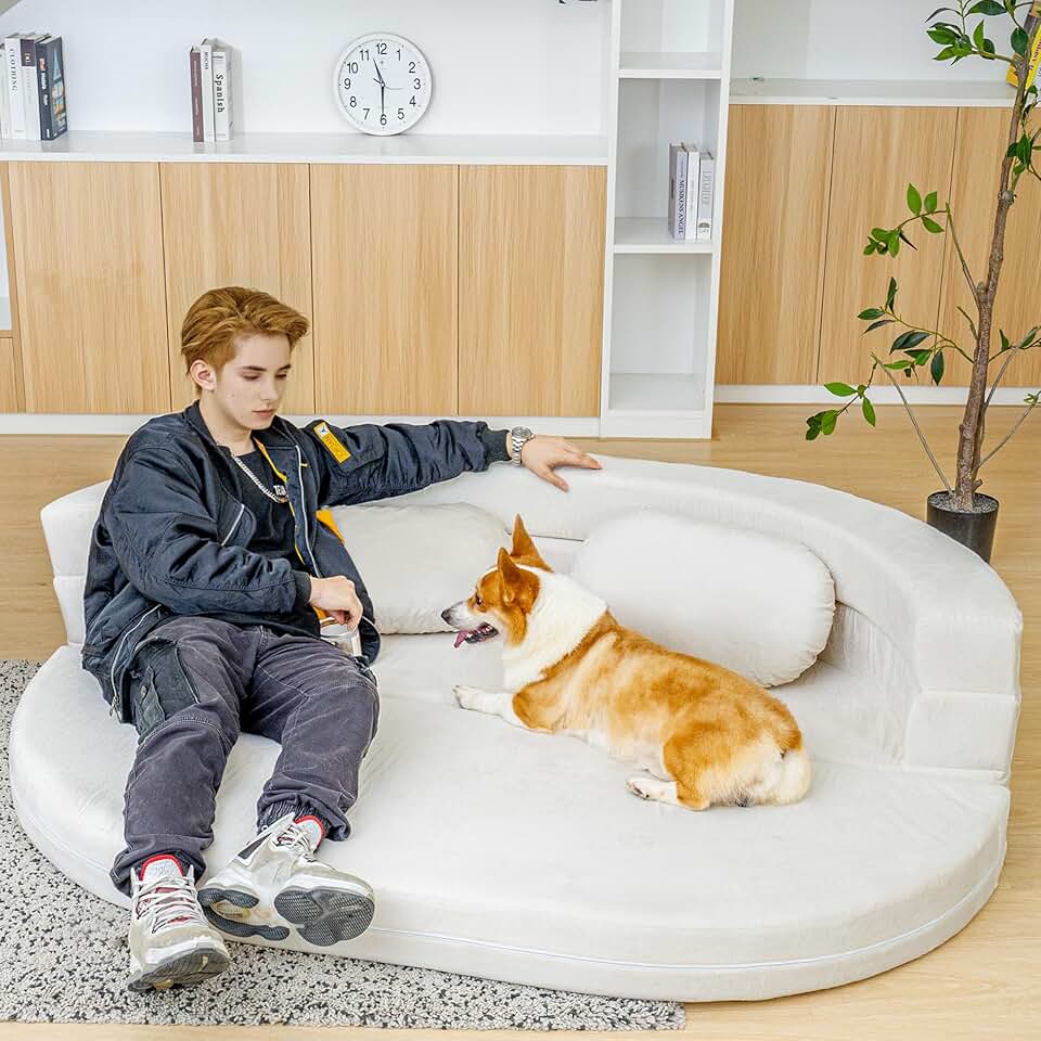 3-in-1 Bean Bag Chair for Adults, Folding Bean Bag Sofa, Giant Lazy Floor Sofa Bed, Velvet Memory Foam BeanBag Chairs with Pillow for Bedroom, Living Room, Dorm