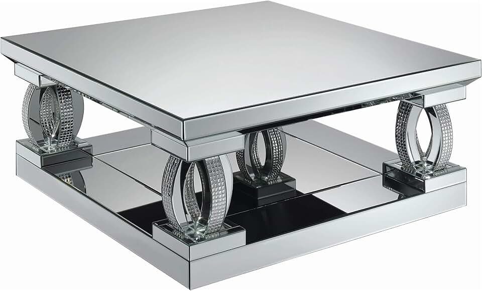 Coaster Home Furnishings Amalia Square Mirrored Cocktail Living Room Sofa Coffee Table Glam Acrylic Crystal Legs with Bottom Shelf No Assembly Clear Mirror 722518