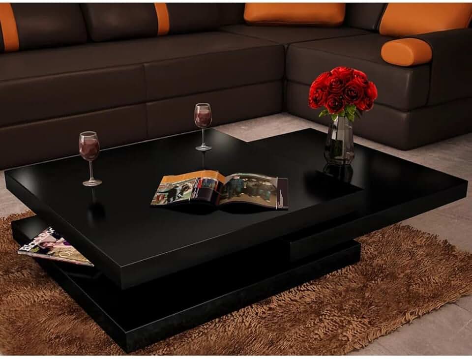 Coffee Table,Modern end Table,Small Table for Bedroom,Dining-Table,Sofa Table,3 Tiers High Gloss Black,Perfect for Dorm Rooms,Office and Small Apartments