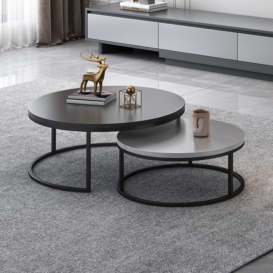 Round Coffee Table Set of 2, Modern Small Coffee Table Sofa Table Tea Table for Living Room, Office Desk, Balcony, Wood Desktop and Metal Legs,Gray,Easy