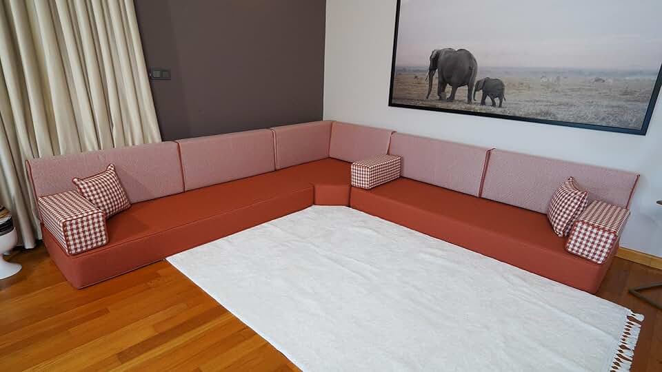 L Shaped Linen Turkish Floor Sofa, Arabic Majlis, Sofa Set Living Room, Diwan Sofa, Arabic Couch, Floor Pillow, Arabic Sofa, Corner Sofa (8'' Thickness Sofa, L Sofa Only)