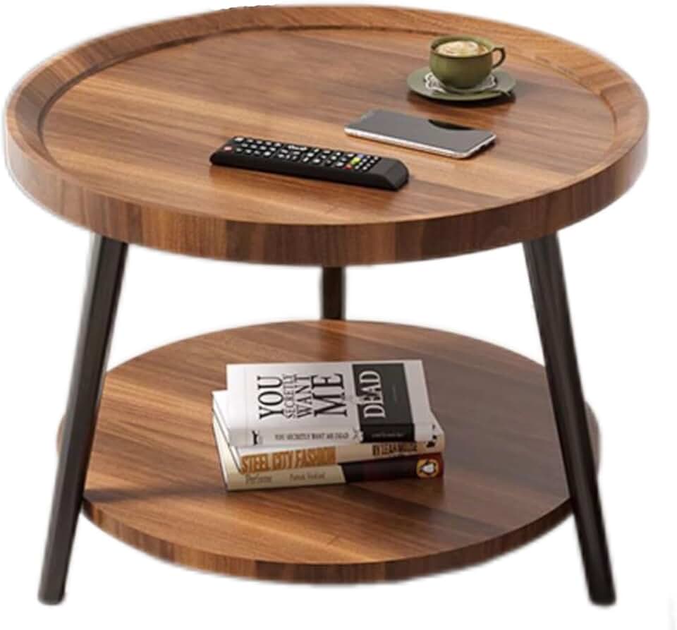 Small Circle Corner Table with Storage, Modern Simple Double-Layer Round Coffee Table for Living Room - Wood Farmhouse Sofa Side Table/Home Office Center Table