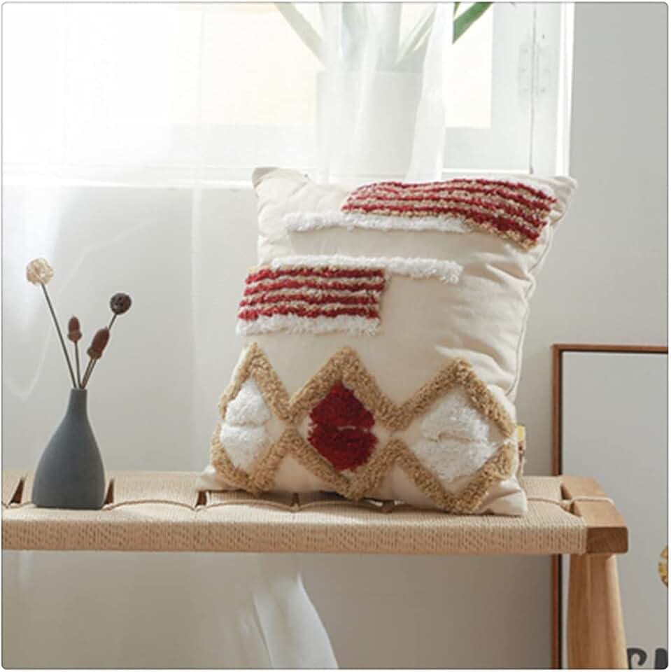 Northern Europe Colorful Square Cushion Cover with Tassel Handmade Pillow Case for Living Room Bedroom Sofa Home Decoration(Style A)