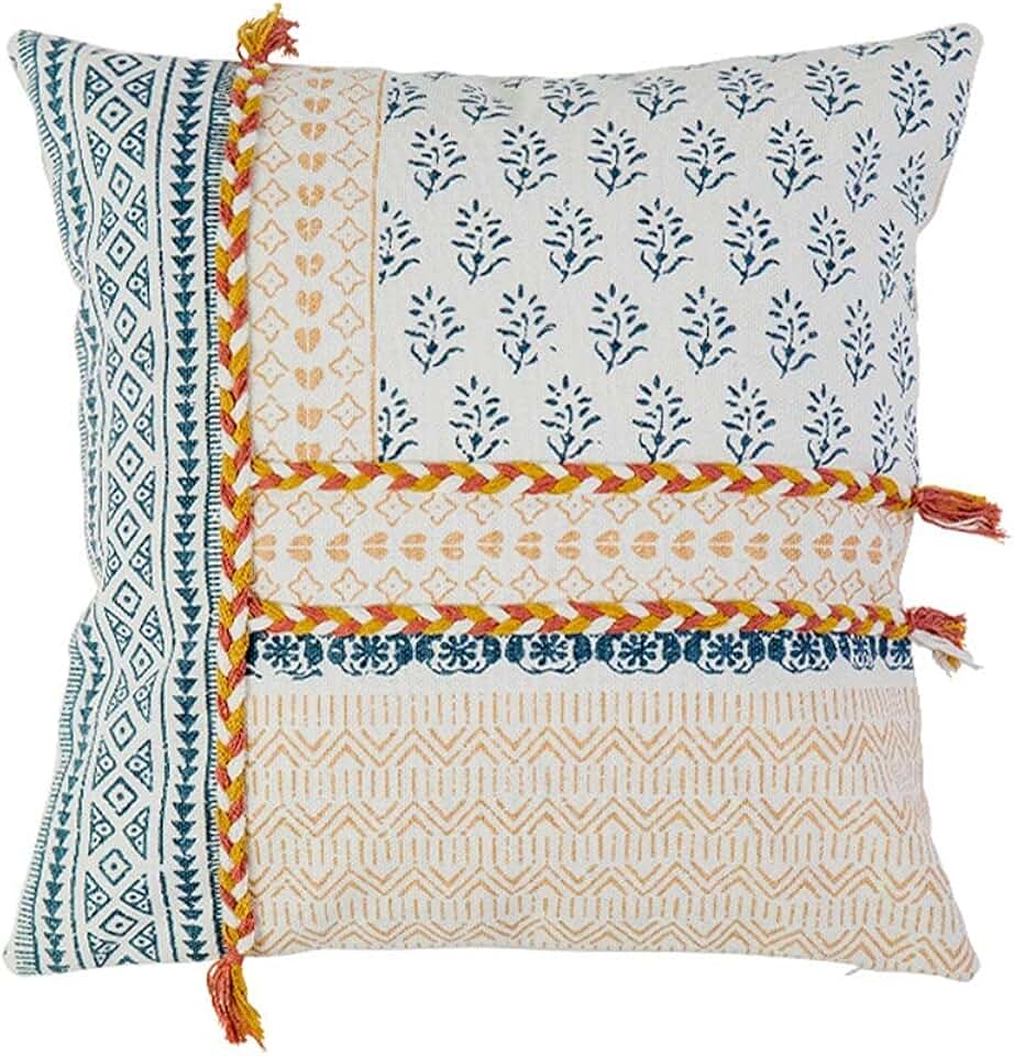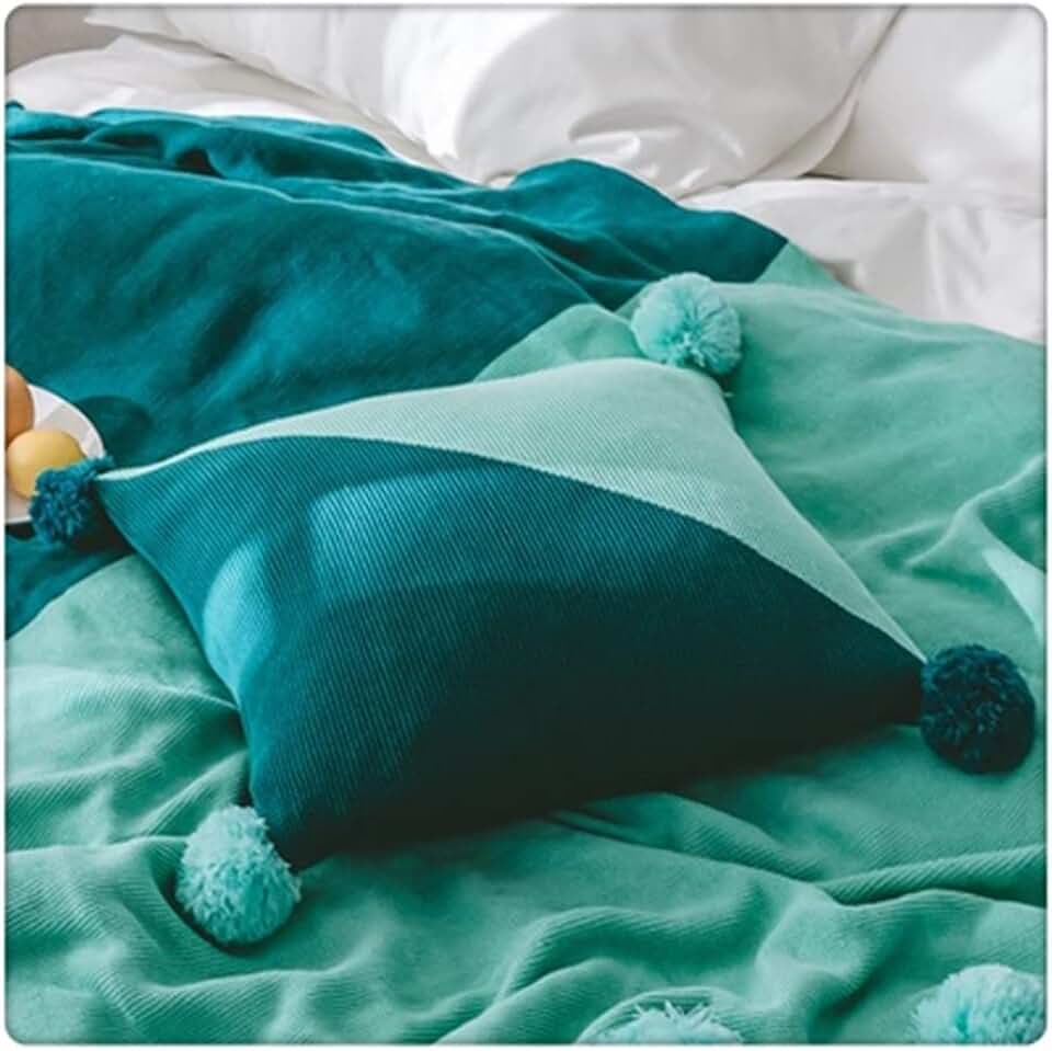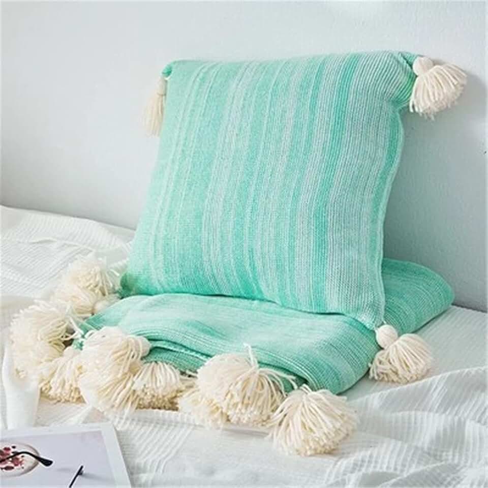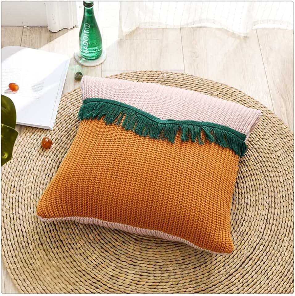 Northern Europe Minimalist Colorful Square with Tassel Handmade Pillow Case for Living Room Bedroom Sofa Home Decoration(Style E)