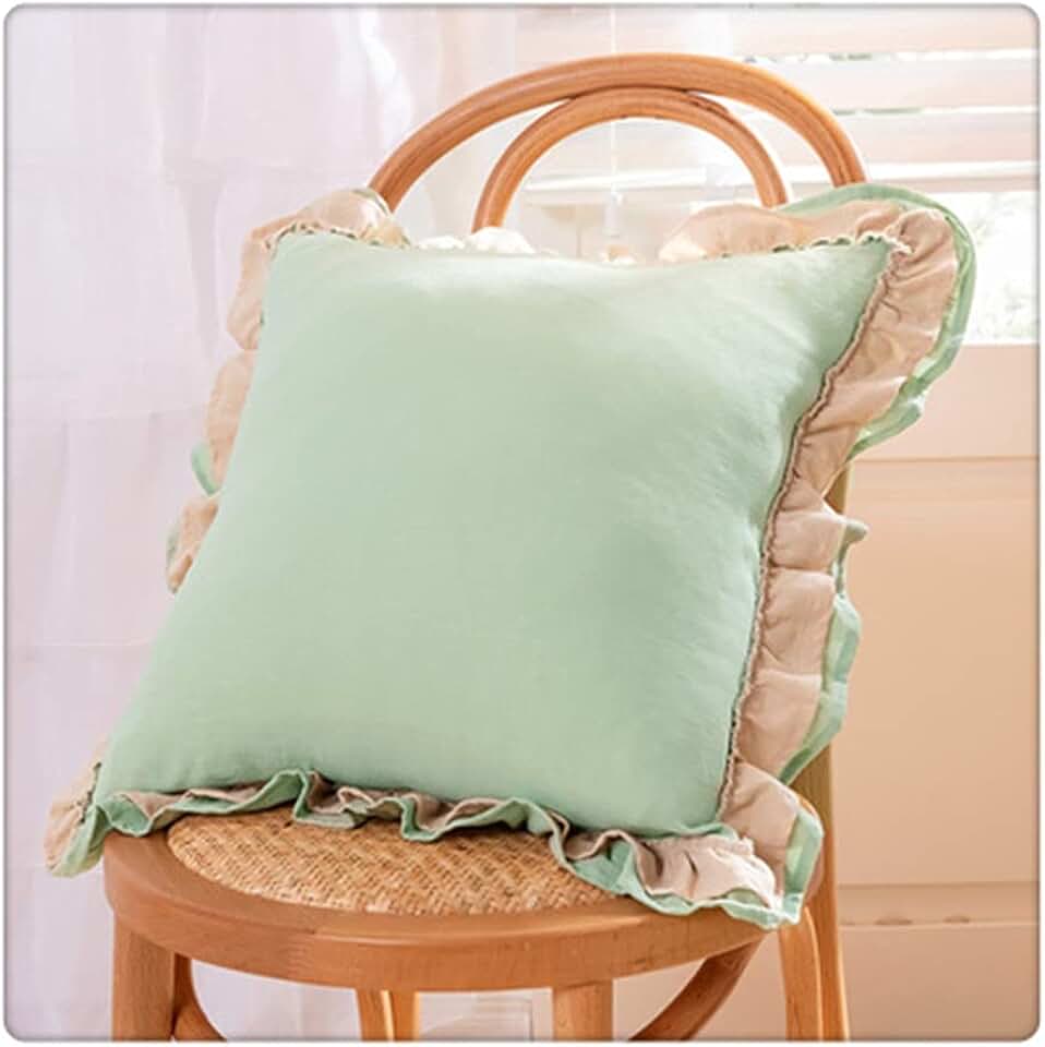 Solid Color Girl Series Lace Ruffle Washed Linen Core Cushion Bed Car Sofa Bedside Office Backrest Pillow(Bronze)