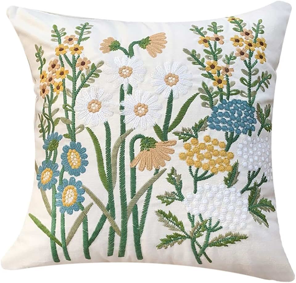 Nordic Embroidery Flower Pillow Country Small Fresh Sofa Cushion Cover Flower Pattern 45cm Cotton Pillowcase Without Core