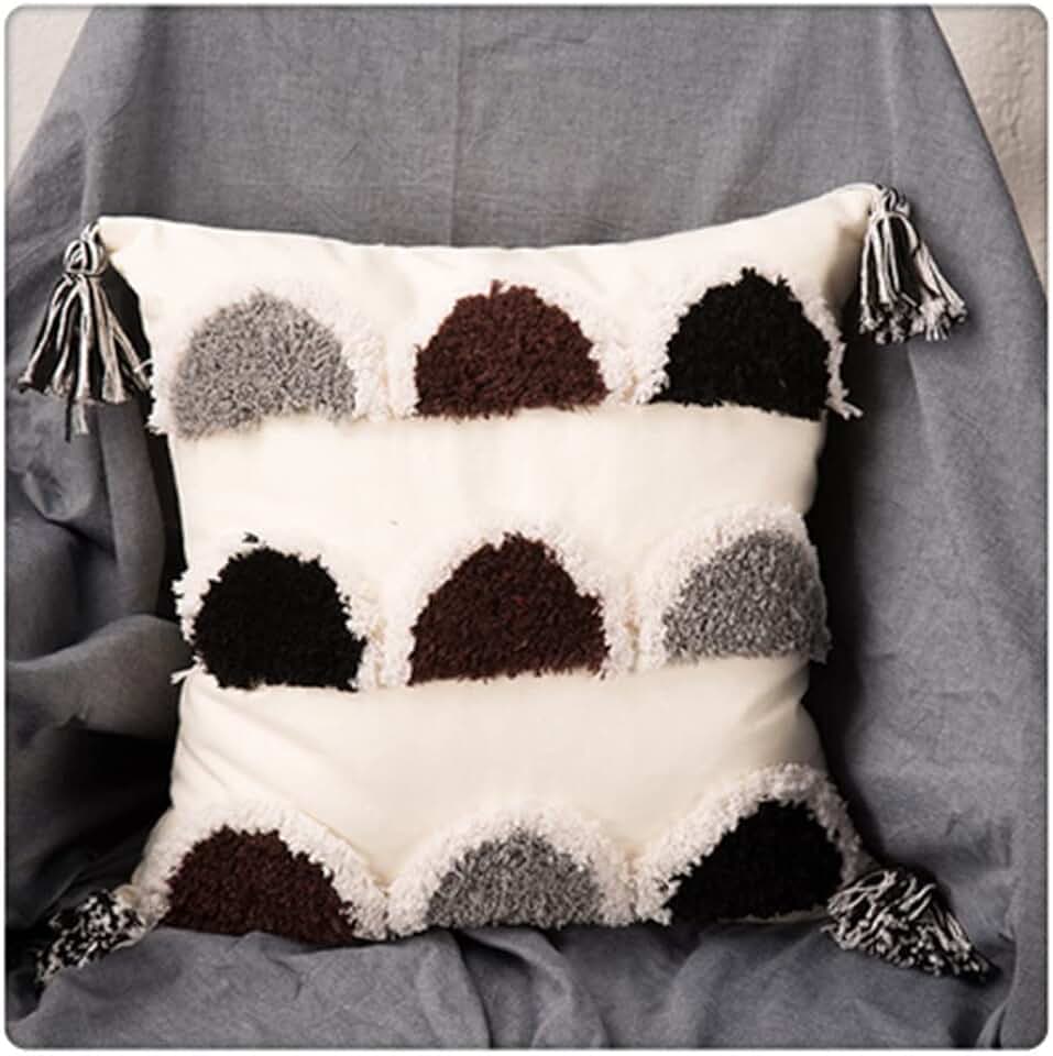 Geometric Tassels Cushion Cover Tuft Woven Pillowcase White Black Pillow Cover Home Sofa Decoration 45x45cm(Style G)