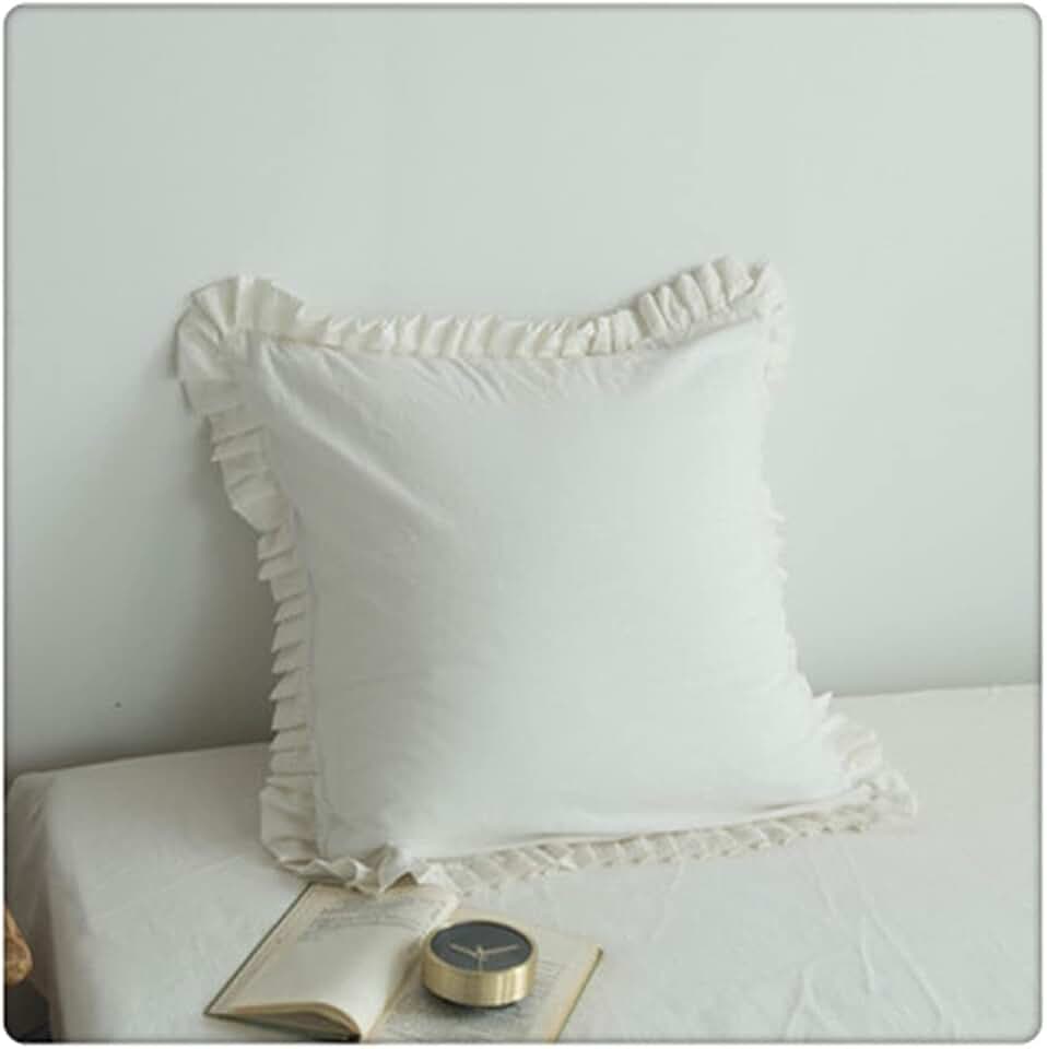 Solid Color Lace Frill Cushion Cover Sofa Ruffle Fringe Throw Pillowcase Cotton Linen Lumabr Pillow Cover(OneColor)