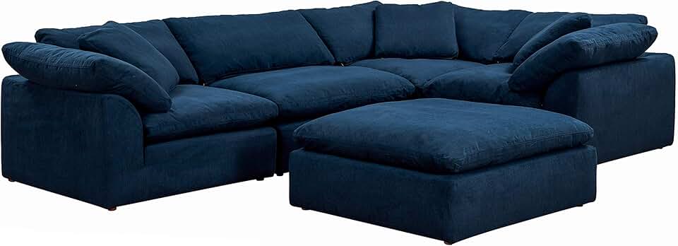 Sunset Trading Contemporary Puff Collection Slipcover Only for 5 Piece L-Shaped Sectional Sofa w Ottoman| Modular Couch Fitted Cover | Stain-Proof Water-Resistant Washable Performance Fabric Navy Blue