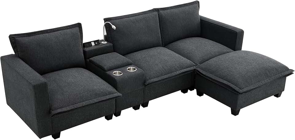 109" Modern Sectional Cloud Sofa with Reading Light & USB Charging Port,4 Seat Chenille Modular Couch W/Console & Cup Holder,Storage Space,Storable Indoor Funiture for Living Room Home