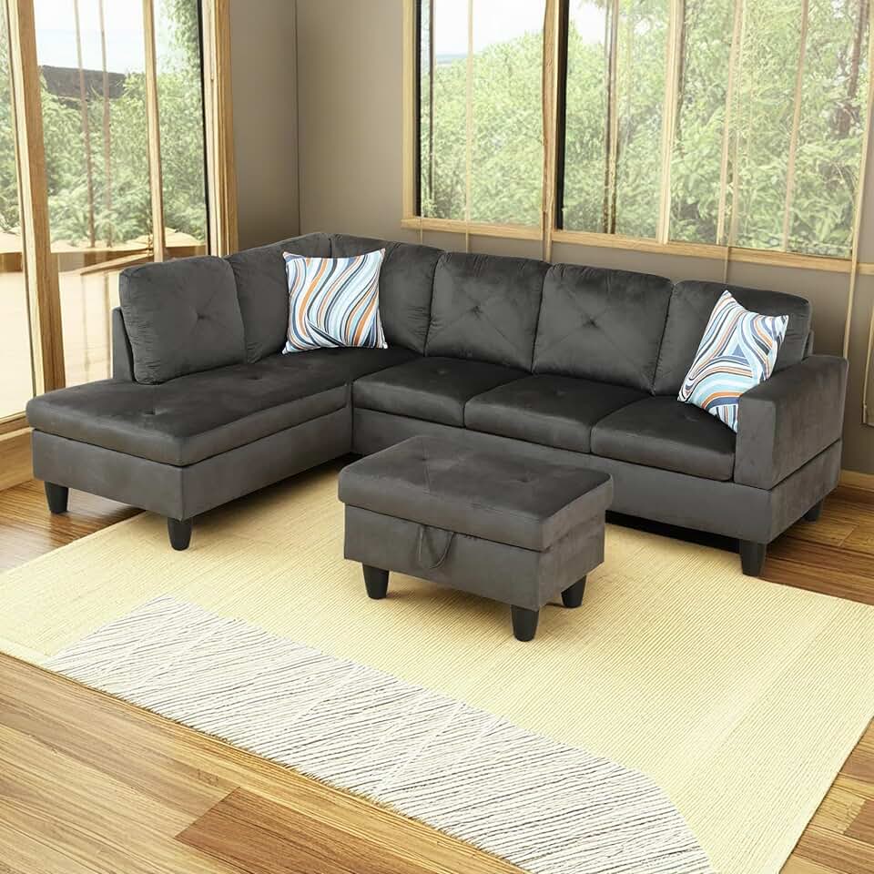 Ball & Cast 97" Sectional Couch with Removable Storage Ottoman,4 Seat L Shape Modular Sofa W/Backrest,Flannel Fabric Left Facing,for Living Room,Apartment,Espresso
