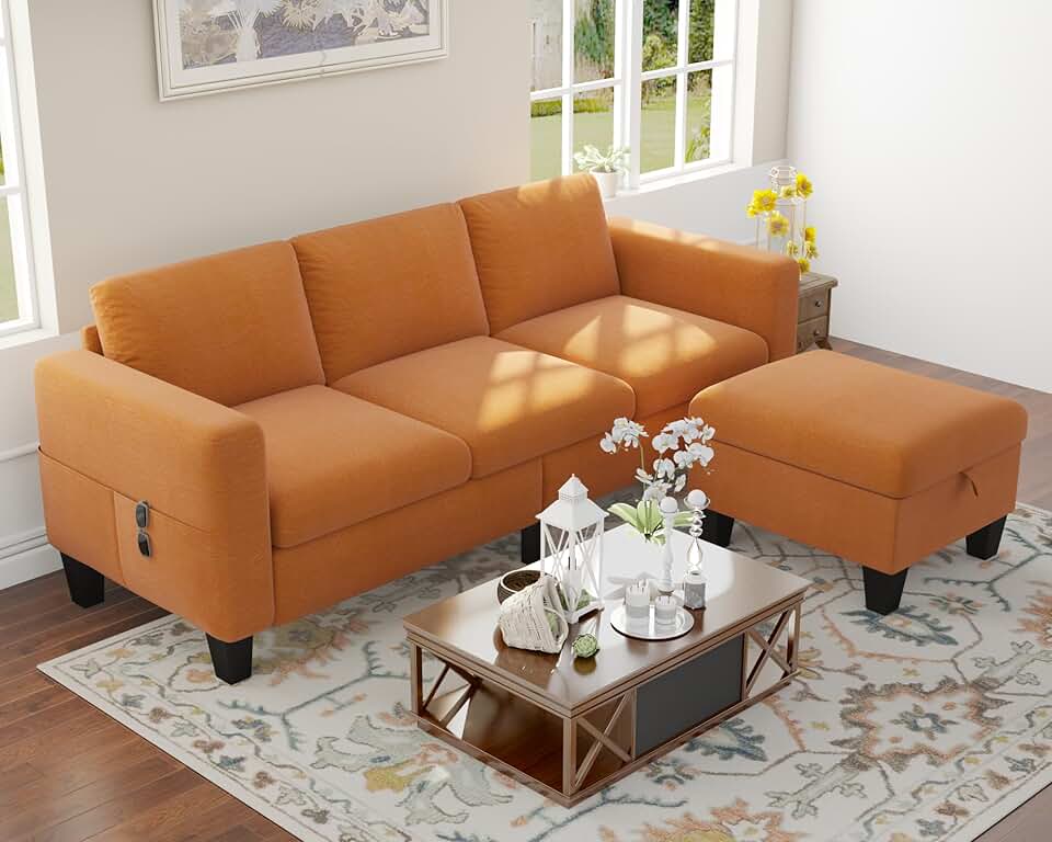 Sectional Sofa Couches for Living Room 78" L Shaped Sofas with Storage Ottoman Small 3 Seater Couch for Small Space, Orange