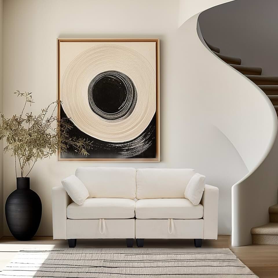 Real Relax Convertible Sectional Sofa Couch, 2 Seat Chenille Modular Sofa with Storage Space and Removable Pillows, Beige