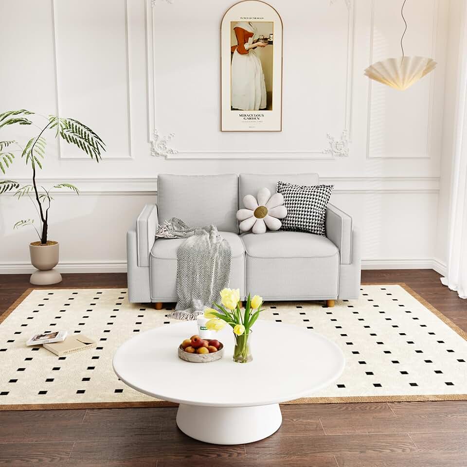 Living Room Modular Couch Wooden Legs Comfy Sofa for Apartment,Bedroom,Office, Sectional, Linen, Dual Armrest Grey Loveseat