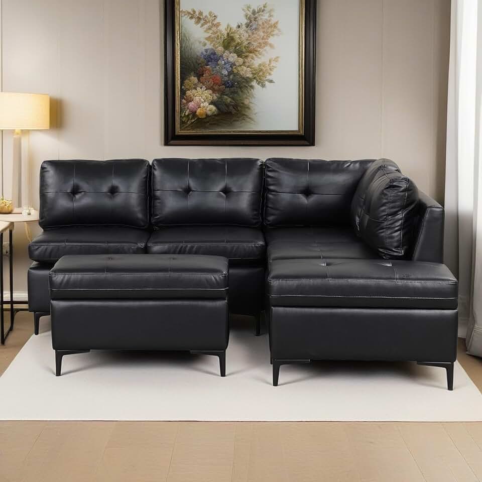 95" L-Shape Modular Sectional Sofa with Movable Storage Ottoman, Pu Leather Corner Couch Set w/Comfortable Backrests, for Living Room Apartment Office