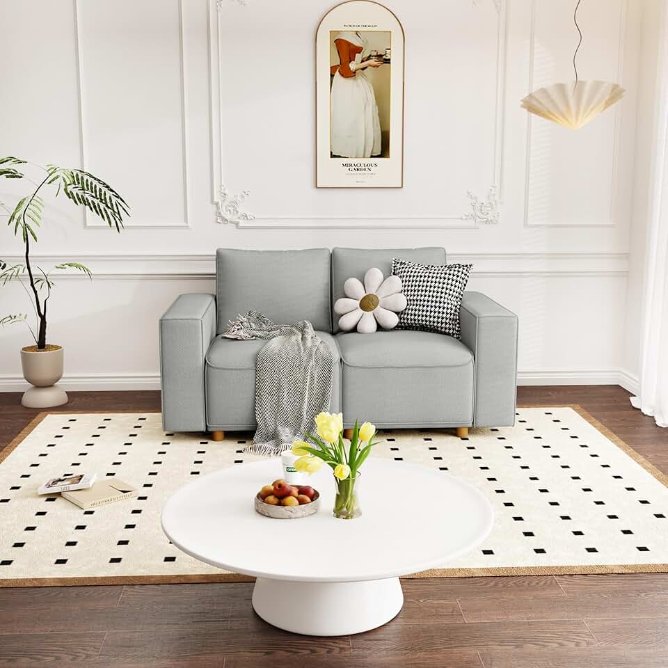 Living Room Modular Couch Wooden Legs Comfy Sofa for Apartment,Bedroom,Office, Sectional, Linen, Dual Armrest Light Grey Loveseat