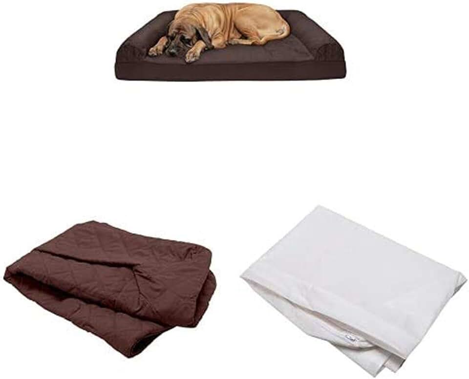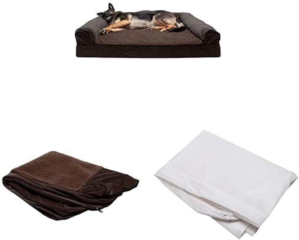 Furhaven Pet Bundle - Jumbo Plus Coffee Cooling Gel Memory Foam Faux Fleece & Chenille Sofa, Extra Dog Bed Cover, & Water-Resistant Mattress Liner for Dogs & Cats