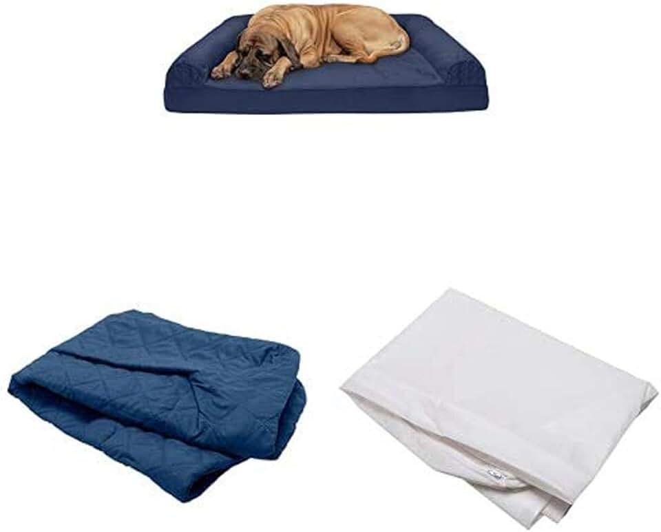 Furhaven Pet Bundle - Jumbo Plus Navy Cooling Gel Memory Foam Quilted Quilted Sofa, Extra Dog Bed Cover, & Water-Resistant Mattress Liner for Dogs & Cats