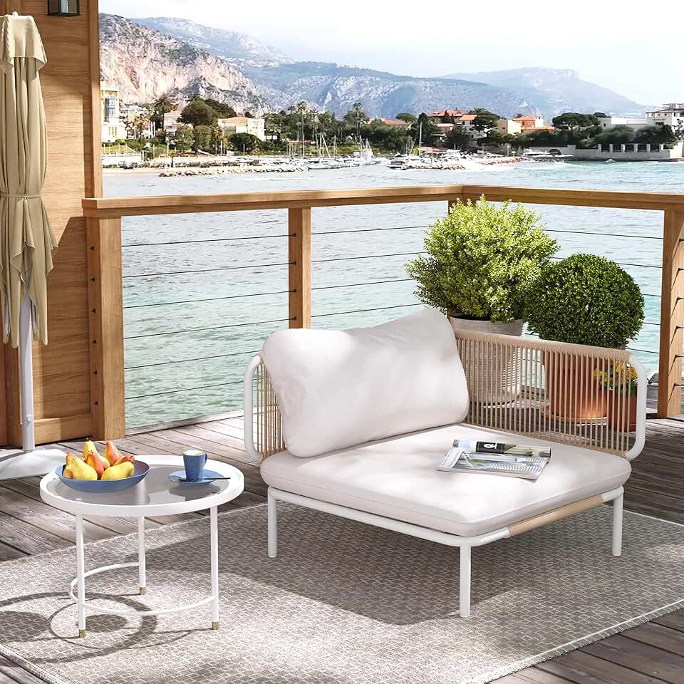 Patio Furniture Set, Outdoor Patio Furniture Oversized Metal Single Sofa, 1-seat Conversation Set with Cushion for Indoor and Outdoor, White Frame and Beige Mat (1 Seat 1 Armrest)