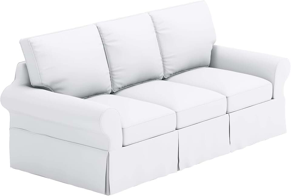 The Thick Cotton Sofa Cover Only Fits Pottery Barn PB Basic Grand (Width: 93", Not 83") 3 Seat Sofa. Durable XL Size Slipcover Replacement (Grand Size White)