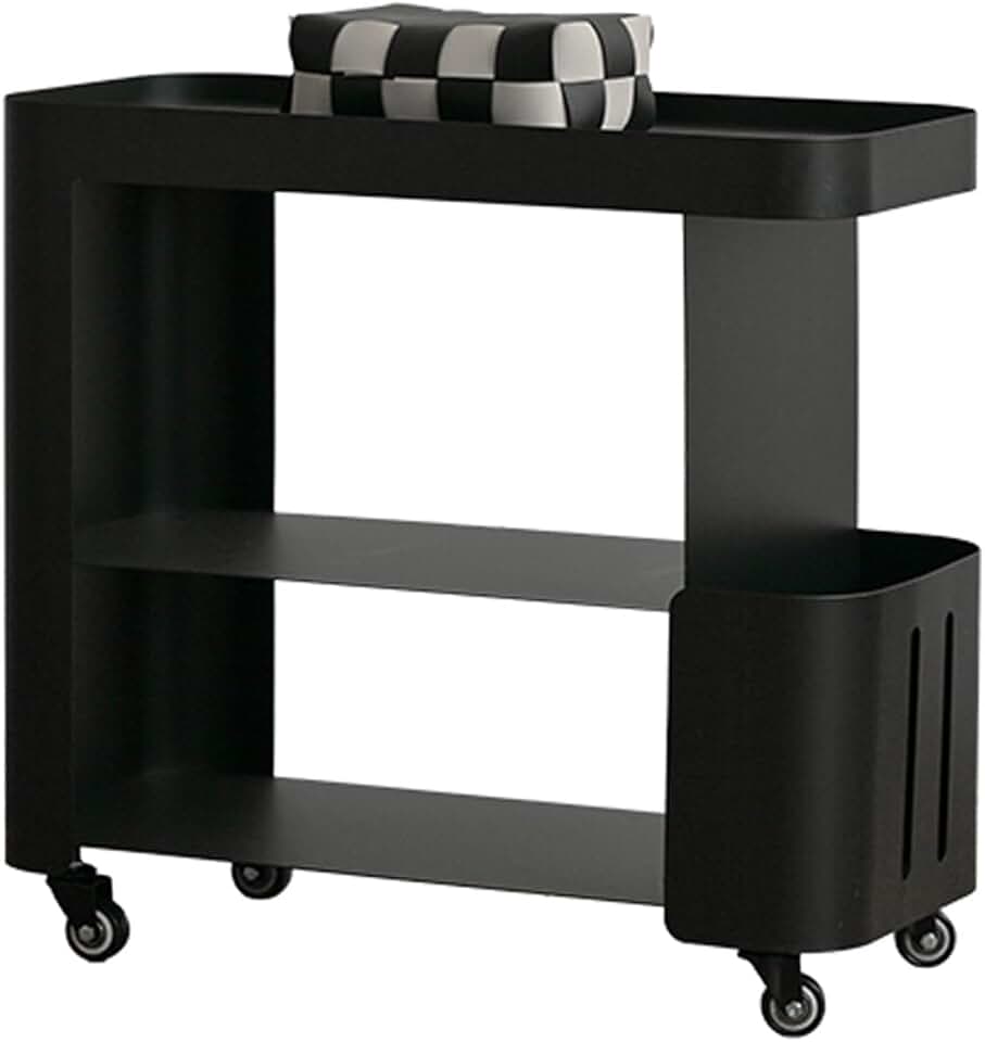 Coffee Table with Wheels, Next to Sofa Couch Bed Cart, TV Tray Tables with Lockable Wheels, 3-Tier Storage Shelf, Snack Table for Living Room, Bedroom, Small Space(Black)