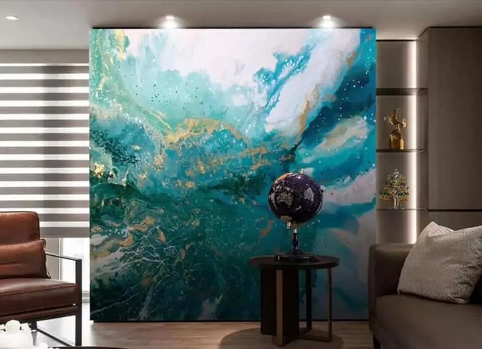 ZEZILE Custom Painting Abstract Blue Landscape Splash-Ink Living Room Sofa 3D Background Wall Decoration Wallpaper Murals