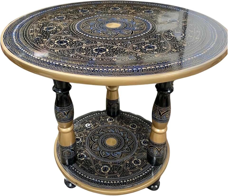 Mandala Embossed Carving Table Sofa, Handcrafted Modern Coffee Table, Living Room Decor, Rustic End Table, Customizable Wooden Furniture, Unique Design Yoga Studio, Tea Table (Diameter 45cm)