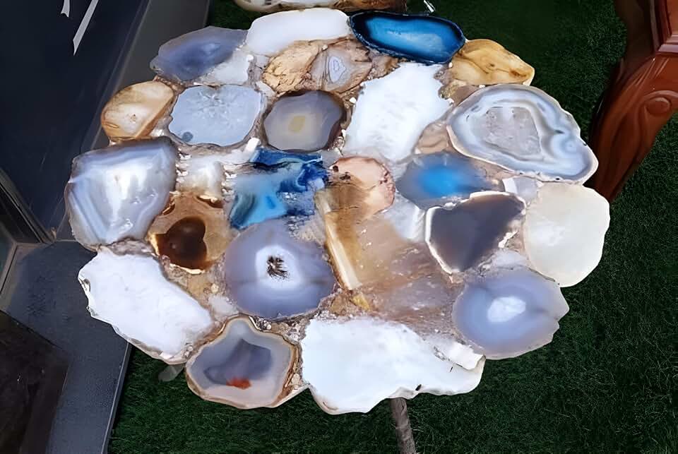 Modern Round Mix Semi Precious Agate Stone Coffee Table Luxury Gemstone Counter Table Sofa Side Table Corner Table Living Room Table Home Décor (Only Table Top)(48" Inches)