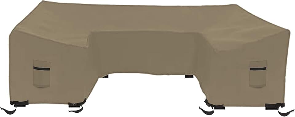 Covers & All Patio U Shape Sofa Cover 12 Oz Waterproof - 100% UV & Weather Resistant Customize Outdoor Sofa Cover with Air Pockets and Drawstring with Snug Fit (33" H x 150" W x 40" D, Beige)