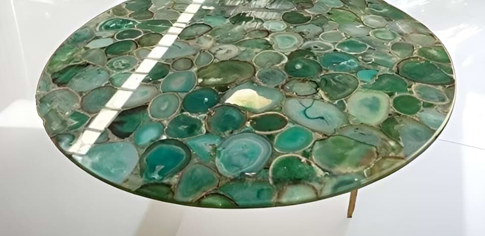 Stunning Green Semi Precious Agate Stone Coffee Table Agate Dining Table Agate Living Room Table Coffee Table Corner Table Centre Table Sofa Side Table Home Décor (Only Table Top) (42 x 42 Inches)