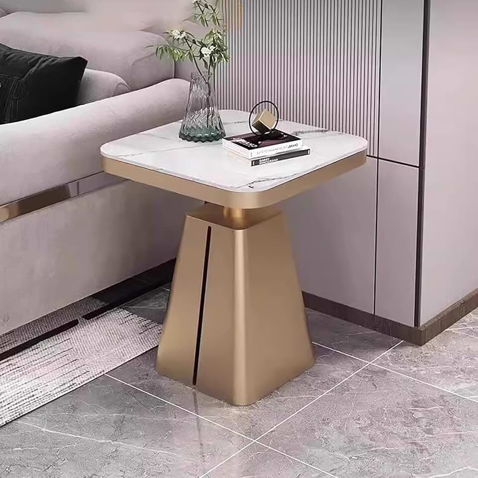 Stone Board Sofa Table Coffee Table, Round Iron Frame End Table for Living Room, Bedroom - Dorm Bedside Table Nightstand Accent Table