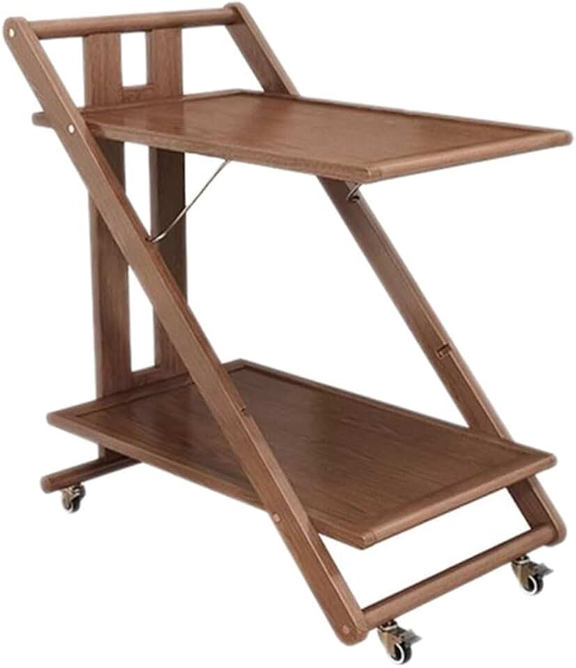 2-Tier Mobile Trolley Sofa Side Table, Foldable Sofa Side Table with Wheels, Rolling Cart Storage Organizer w/Wheels, for Living Room Bedroom Balcony Office, Home Decor