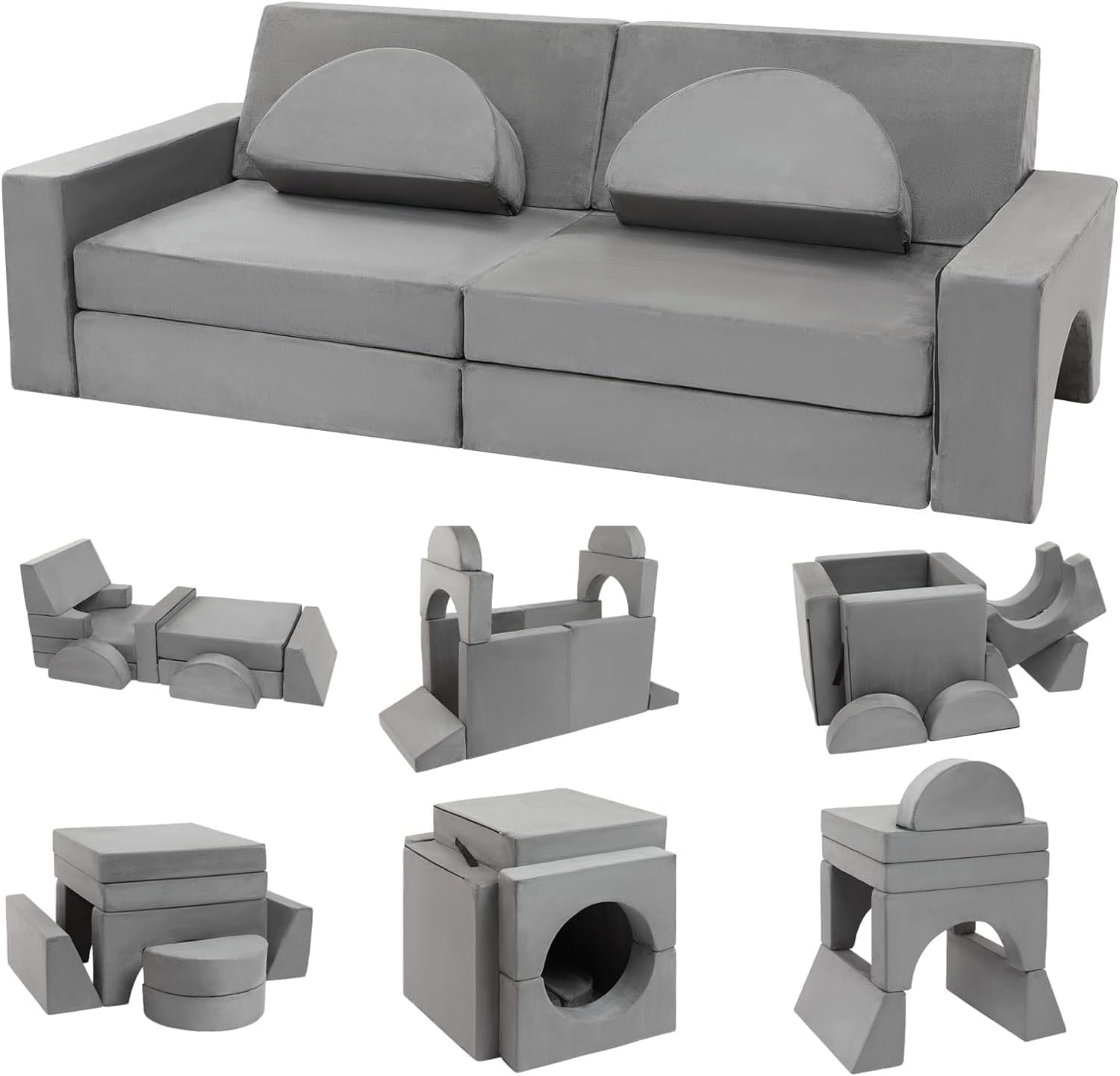 13Pcs Kids Couch, Wanan Toddler Couch Kids Sofa Couch, Kids Fold Out Couch for Playroom Bedroom, Modular Couch for Boys and Girls, Play Couch Sofa for Kids, Gray