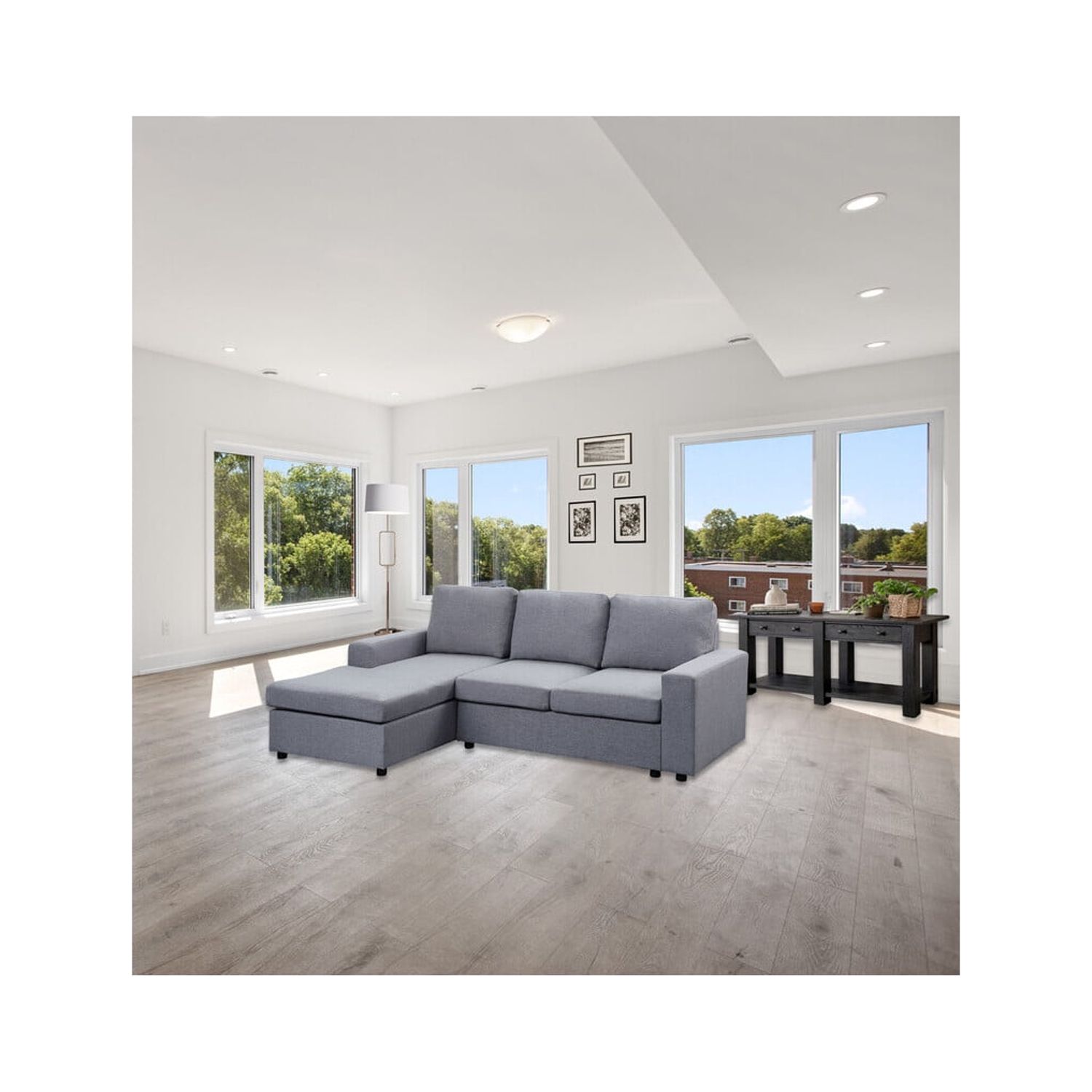 Homestock Boho Beauty Light Gray Linen Reversible Sectional Sofa Chaise